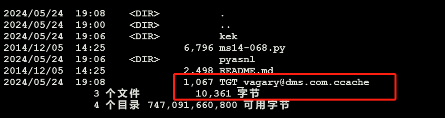 // 读取.ccache格式的缓存票据,并将票据以.kirbi格式转出(这一步是在windows攻击机上进行的)